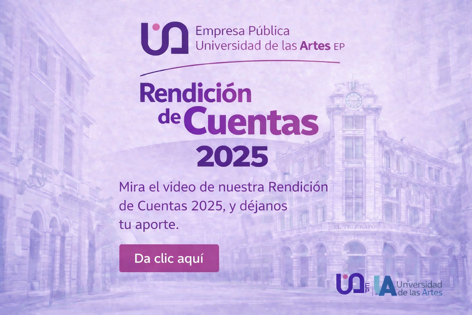 📩 La #DefensoríaDelPueblo invita al conversatorio virtual: “Transparencia y acceso a la información pública: una mirada desde las mujeres” 🗓️12 de marzo de 2026 ⏰10:00 🖱️ Conéctate en Teams➡️ https://lnkd.in/e5MiDD_U […] https://www.uartes.edu.ec/sitio/blog/2025/07/26/rendicion-de-cuentas-2024-de-la-empresa-publica-de-la-universidad-de-las-artes/ El 2024 fue el segundo año de operaciones de la Empresa Pública de la Universidad de las Artes, UArtes EP, el cual estuvo marcado por múltiples desafíos, […] La Defensoría del Pueblo de Ecuador, en su calidad de Institución Nacional de Derechos Humanos y de la Naturaleza, que ejerce como órgano rector en materia de transparencia y acceso […] ¡Andréth se consagra como Artista Revelación en los Premios Disco Rojo 2025! Con su carisma, talento y una propuesta musical romántica, Andréth conquistó al público y se llevó uno de […] La comercialización de bienes artísticos en nuestro medio suele atravesar el fenómeno de la precariedad, en tanto que el imaginario colectivo aún comprende al arte como una expresión elitista, ajena […] ¿Eres artista y tienes tu propia línea de merch? ¿Creas y elaboras productos originales? ¡Entonces esta convocatoria es para ti! Revisa las bases de la convocatoria en el link de […]